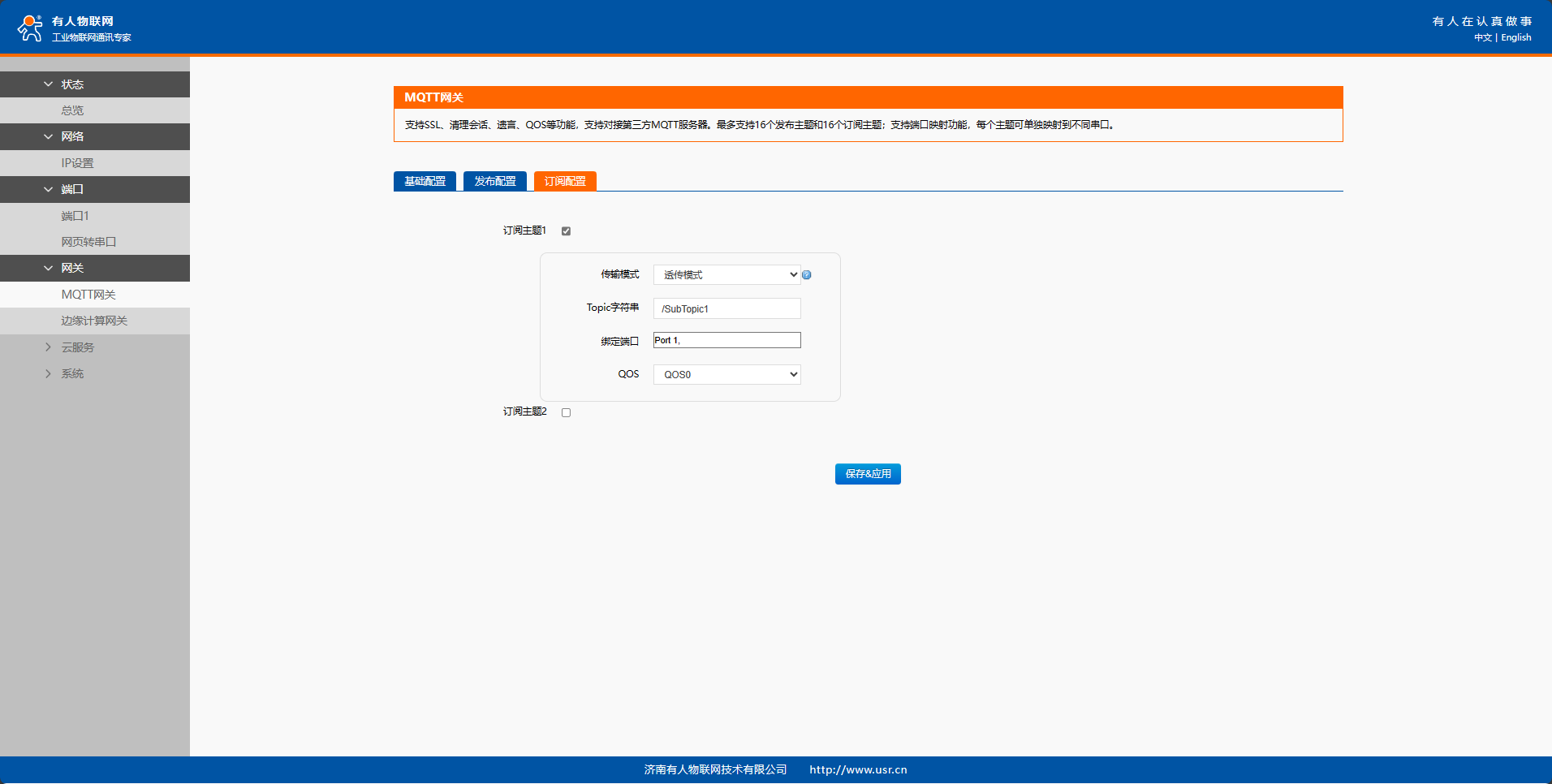 在訂閱配置中,自定義N510設(shè)備的訂閱主題,Topic字符串配置為mqtt服務(wù)器的發(fā)布主題。