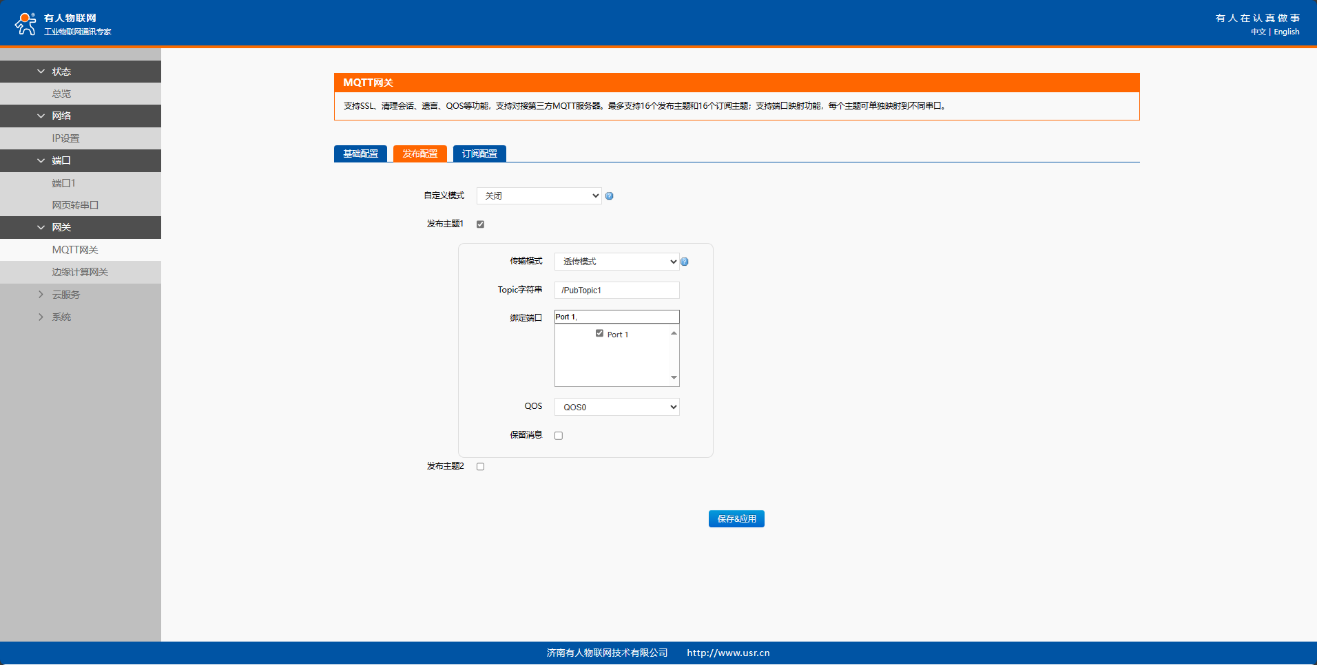 在發(fā)布配置中,自定義N510設(shè)備的發(fā)布主題,Topic字符串配置為mqtt服務(wù)器的訂閱主題。