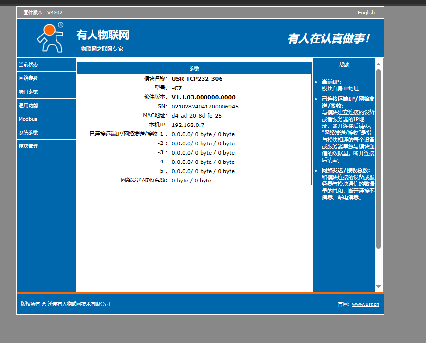 1、USR-TCP232-306 說明書:http://m.0575400.com/Download/920.html