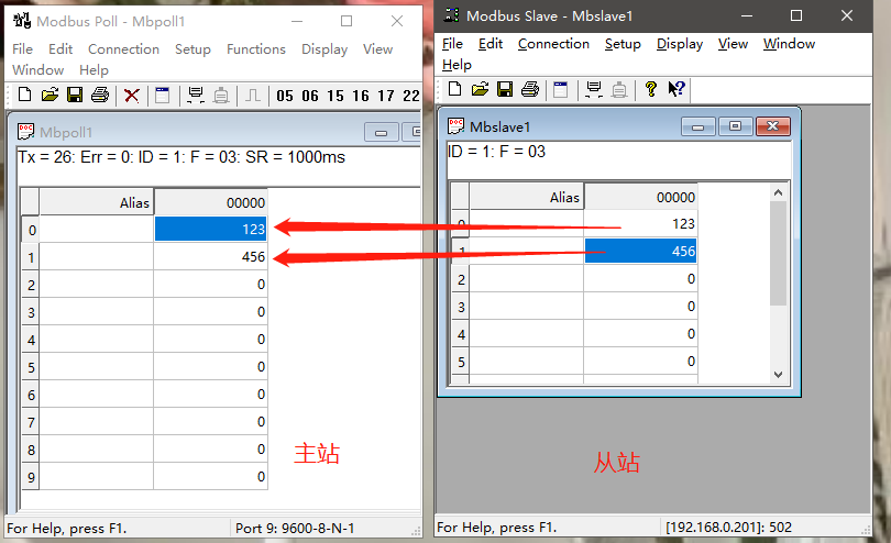 安裝并打開modbus slave軟件,用來模擬網口從站設備。設置本地ip:192.168.0.201,本地端口:502 安裝并打開modbus poll軟件,用來模擬串口主站設備。調用電腦設備管理器中生成的com口,本案例使用com9。