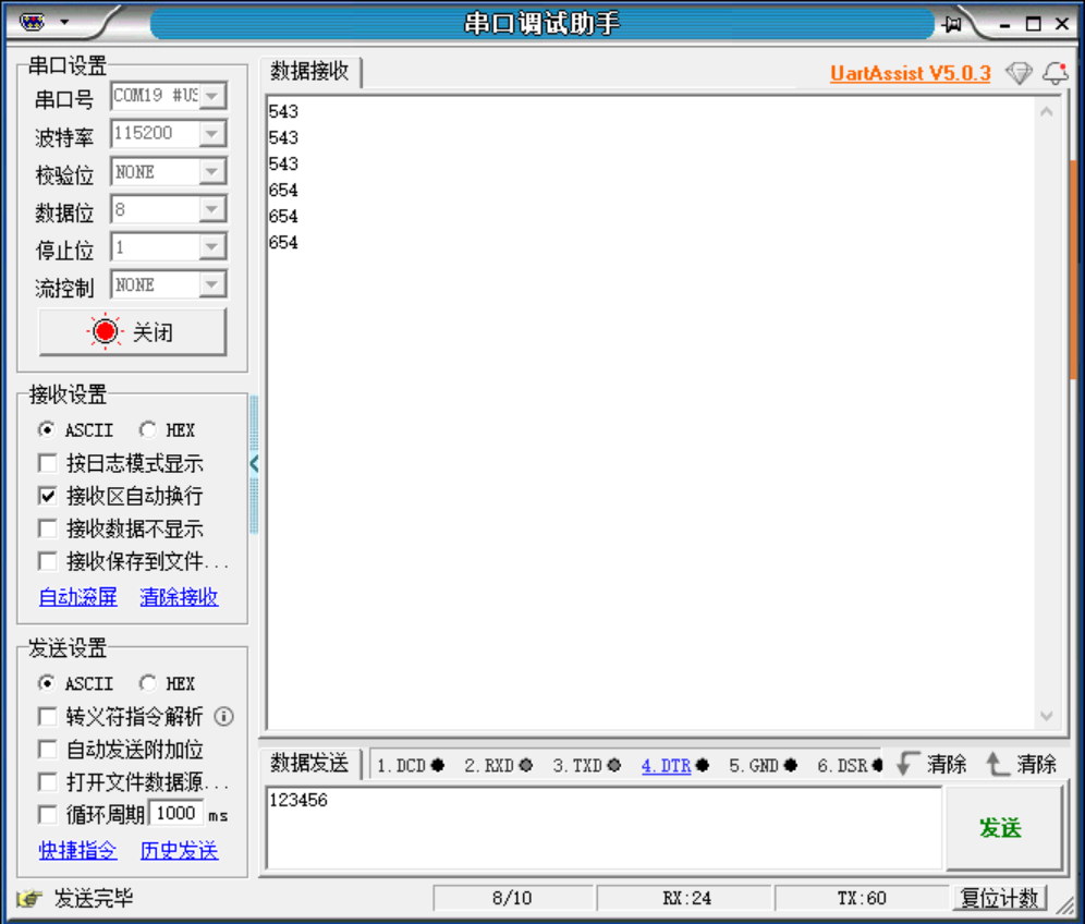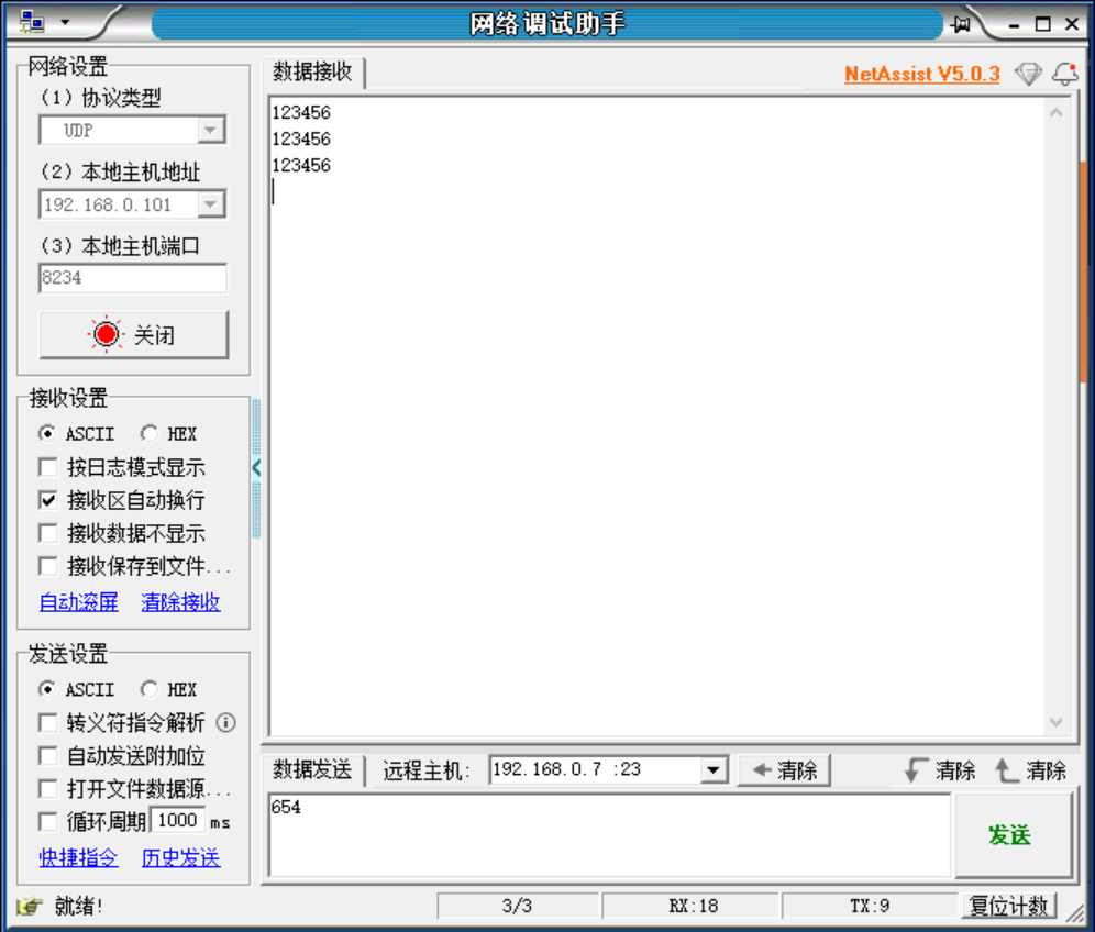 第二個電腦打開一個網絡調試助手 IP和T1保持同網段,端口是8234,也可以接收到T1串口發送的消息。