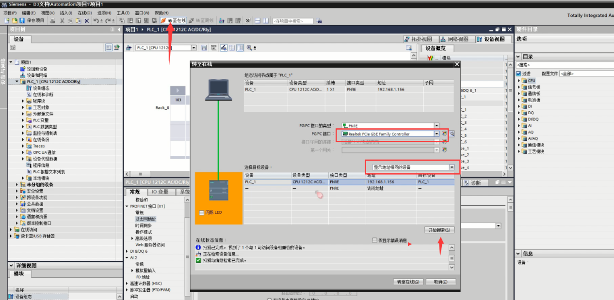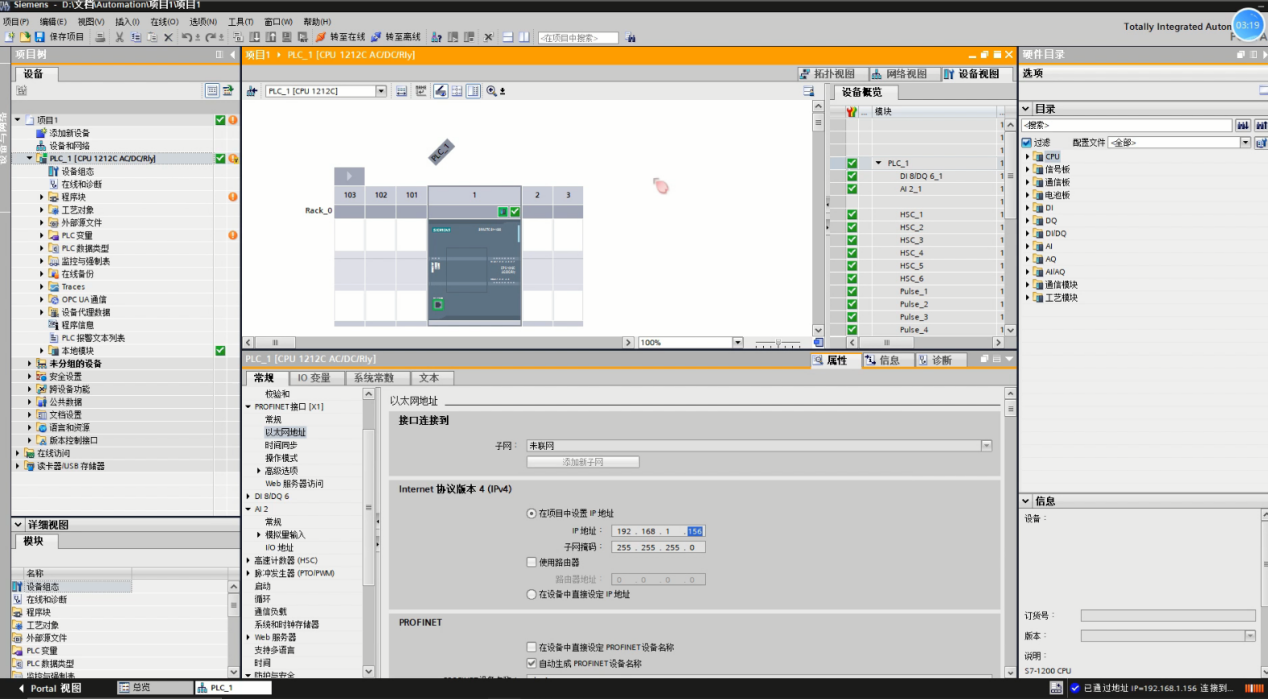 4、打開博圖軟件添加一個與plc對應型號與固件版本的設備