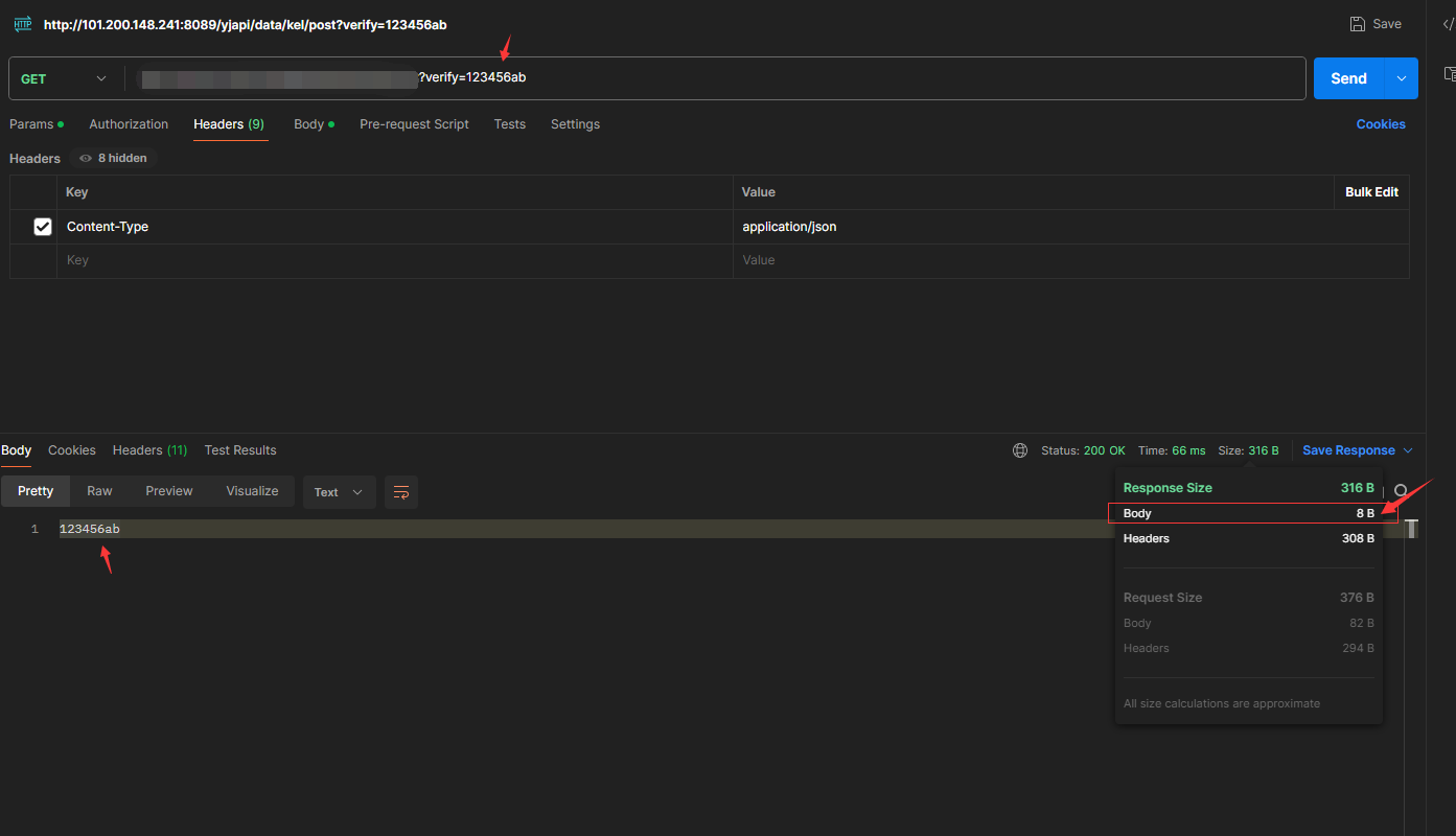 將填寫的URL復制進postman后面+?verify=123456ab 藍色的8個字節可隨意更換測試