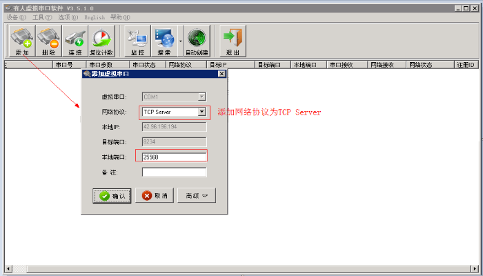 服務器中設置虛擬串口軟件和串口調試助手軟件;