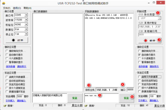 USR-C210連接無線路由器進行局域網(wǎng)通信