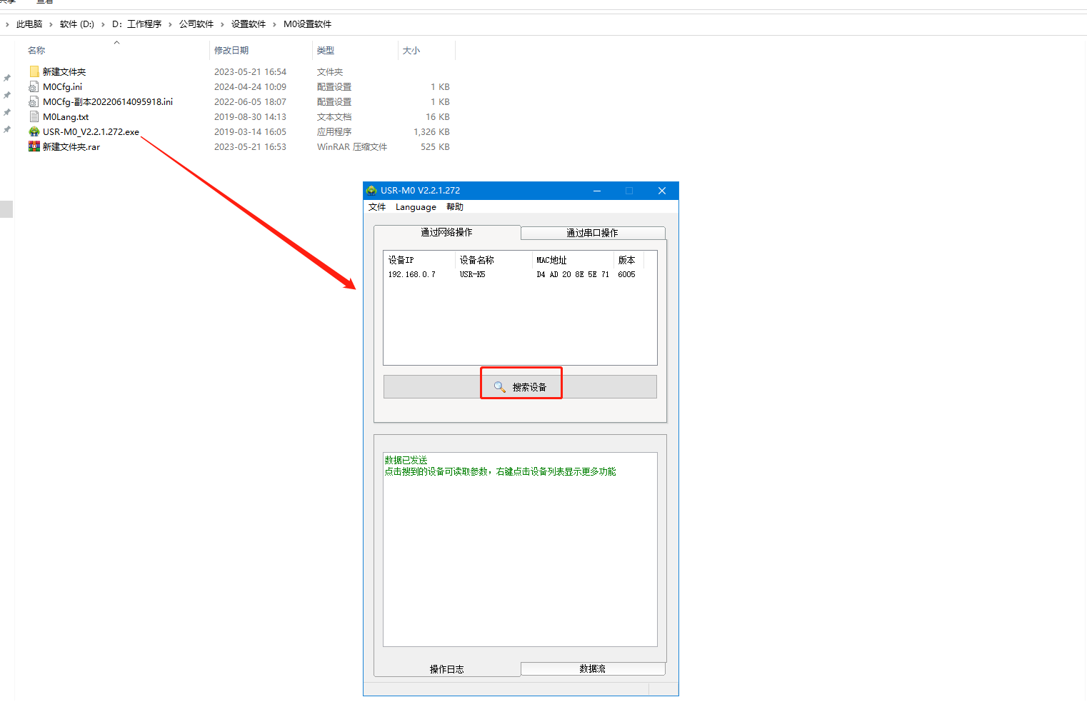USR-K5和電腦網線直連,打開M0軟件,搜到USR-K5的IP。