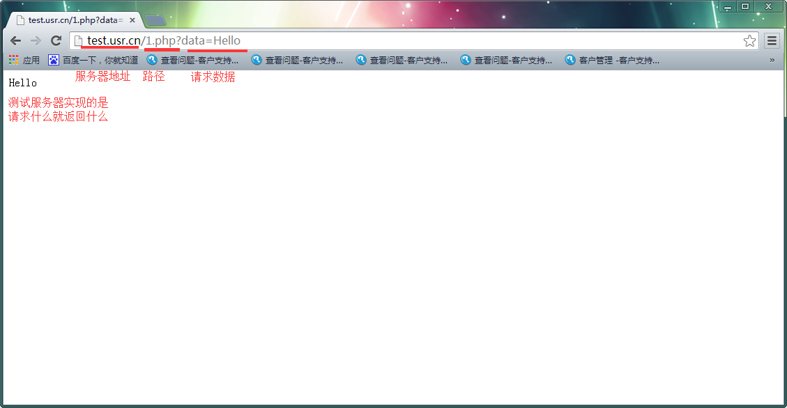 3、發送請求數據,web服務器返回請求信息到瀏覽器