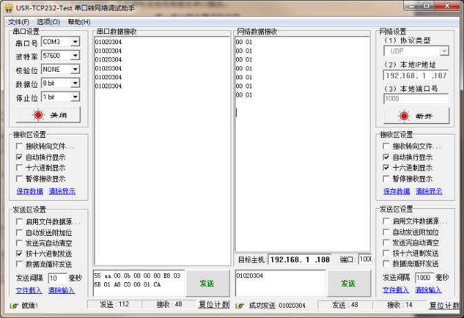 4、登錄設置網頁,設置為串口指令模式,點擊確定;串口及網絡設置,設置成UDP Client,目標IP192.168.0.107,目標端口1000。模塊管理,重啟。