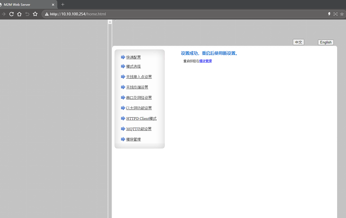 3、網(wǎng)頁設(shè)置完參數(shù),重啟模塊。