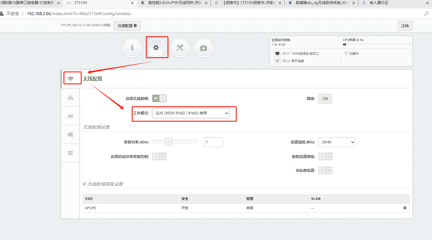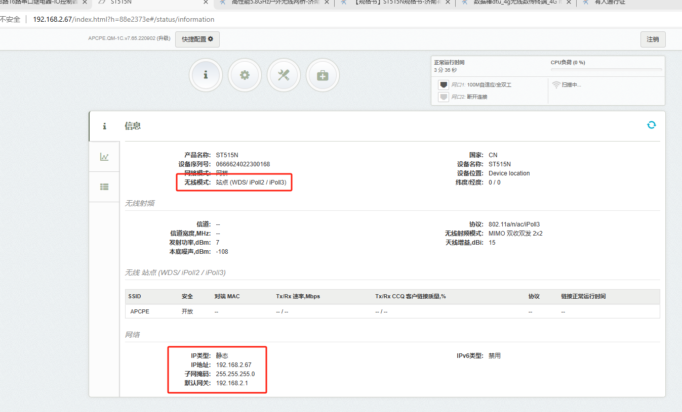 電腦打開瀏覽器,輸入IP 192168.0.66進(jìn)入USR-ST515N的內(nèi)置網(wǎng)頁,賬號admin密碼admin01