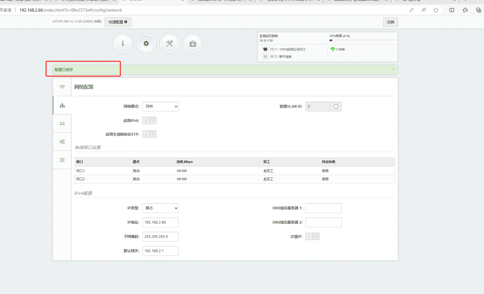 網(wǎng)絡(luò)設(shè)置中可需改設(shè)備的IP ,本例中國接入點(diǎn)設(shè)備保持出廠默認(rèn)的IP信息