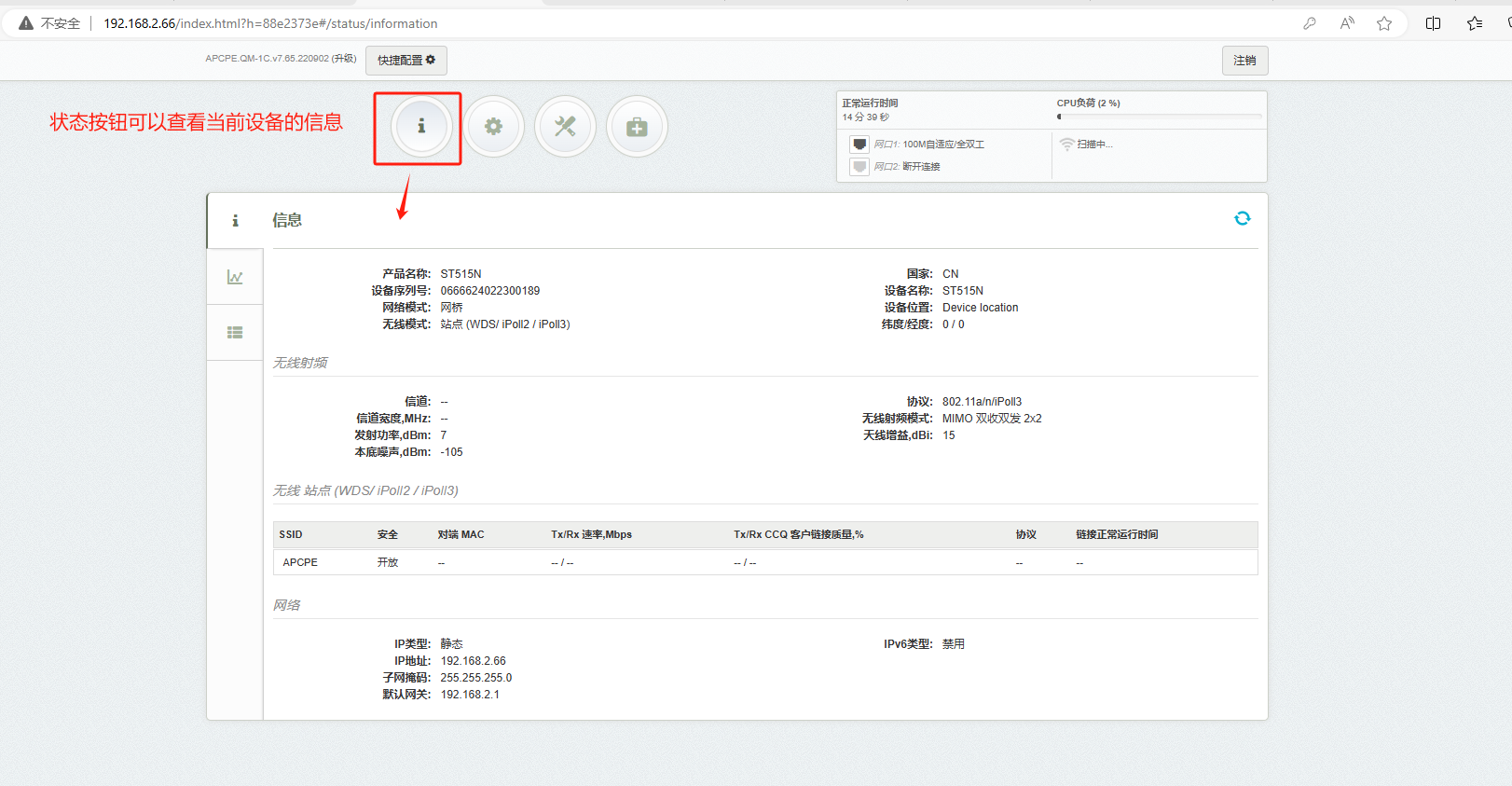 狀態(tài)按鈕可以查看當(dāng)前設(shè)備的信息