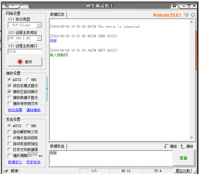 電腦1和電腦2之間進(jìn)行ping測試以及TCP連接數(shù)據(jù)交互測試。