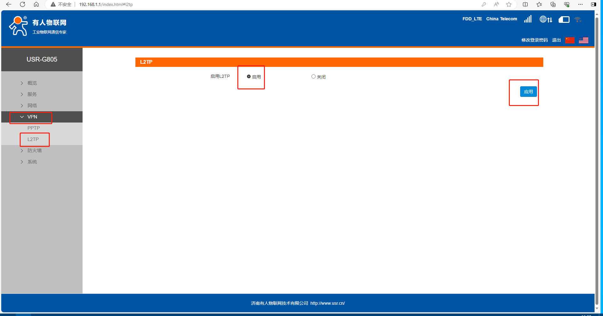 3、在VPN-L2TP,勾選啟用,點擊應用。