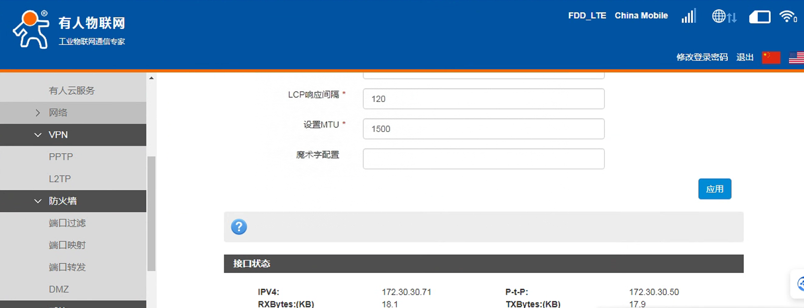 注意:G805系列設置完參數,點擊應用后,重啟生效。