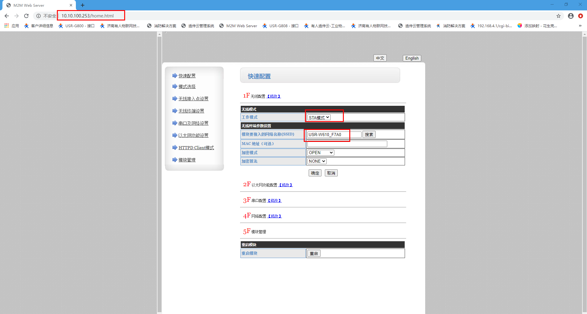 5、瀏覽器可以用10.10.100.253,登錄USR-W610的內(nèi)置網(wǎng)頁。