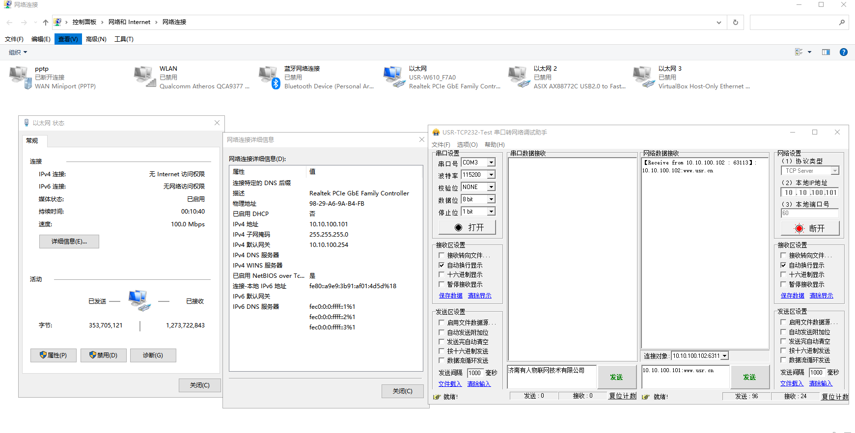 第二個(gè)USR-W610 設(shè)置STA+橋接模式,第二臺(tái)電腦用網(wǎng)線連接W610的網(wǎng)口,使用電源適配給USR-W610上電。