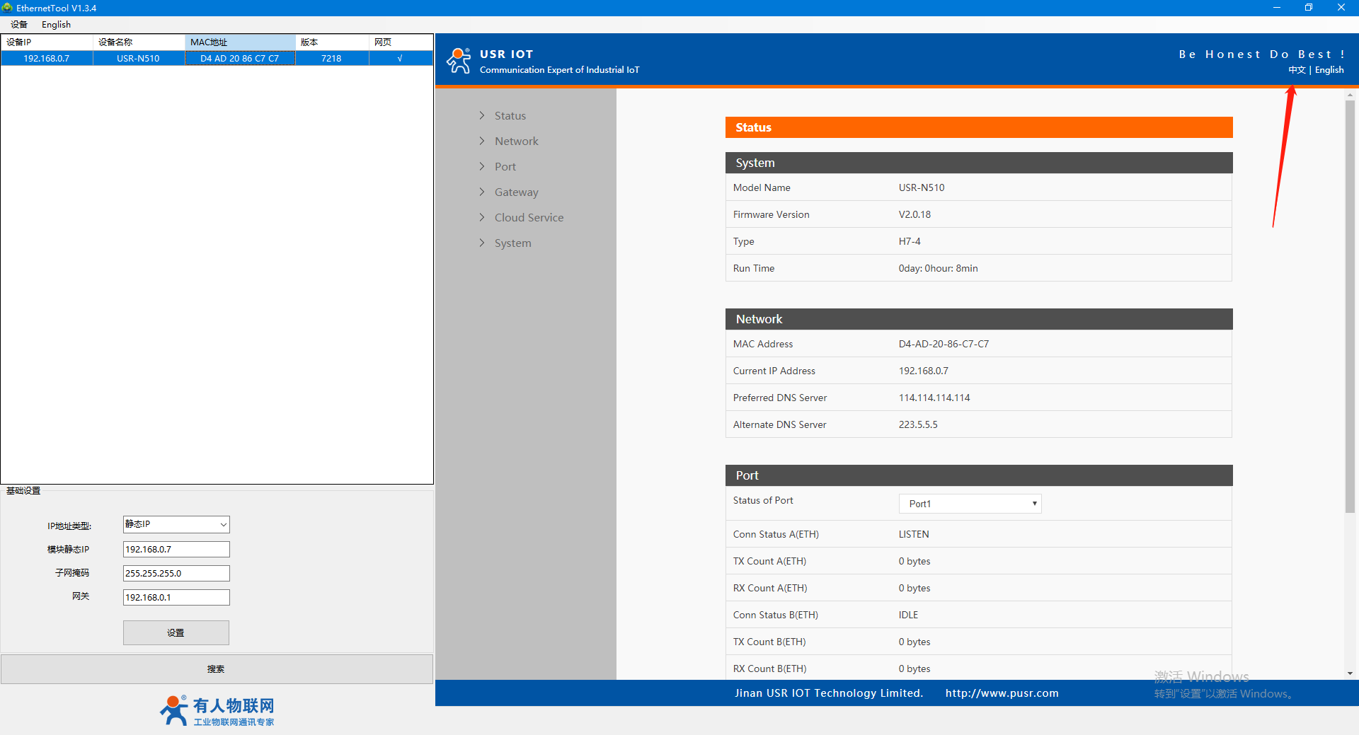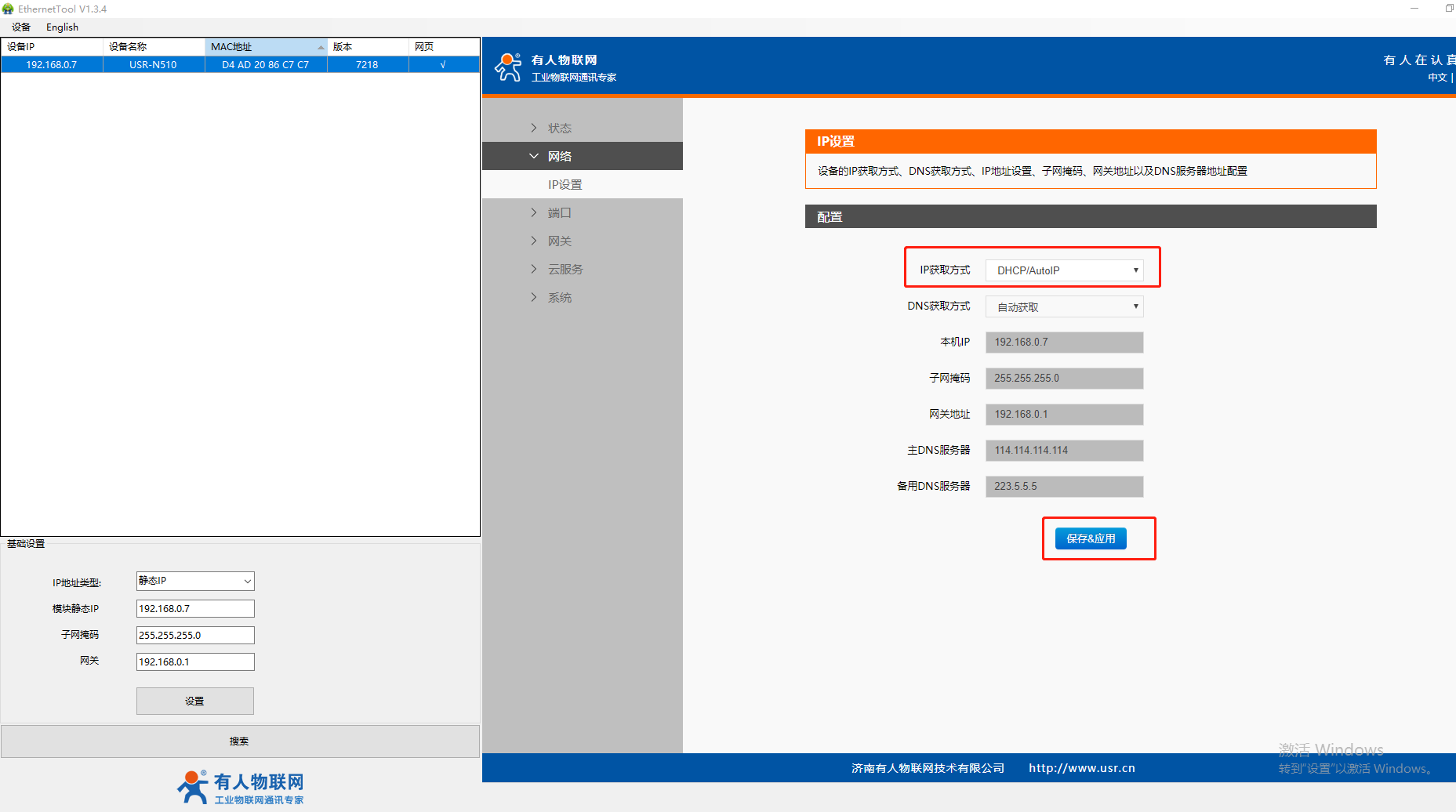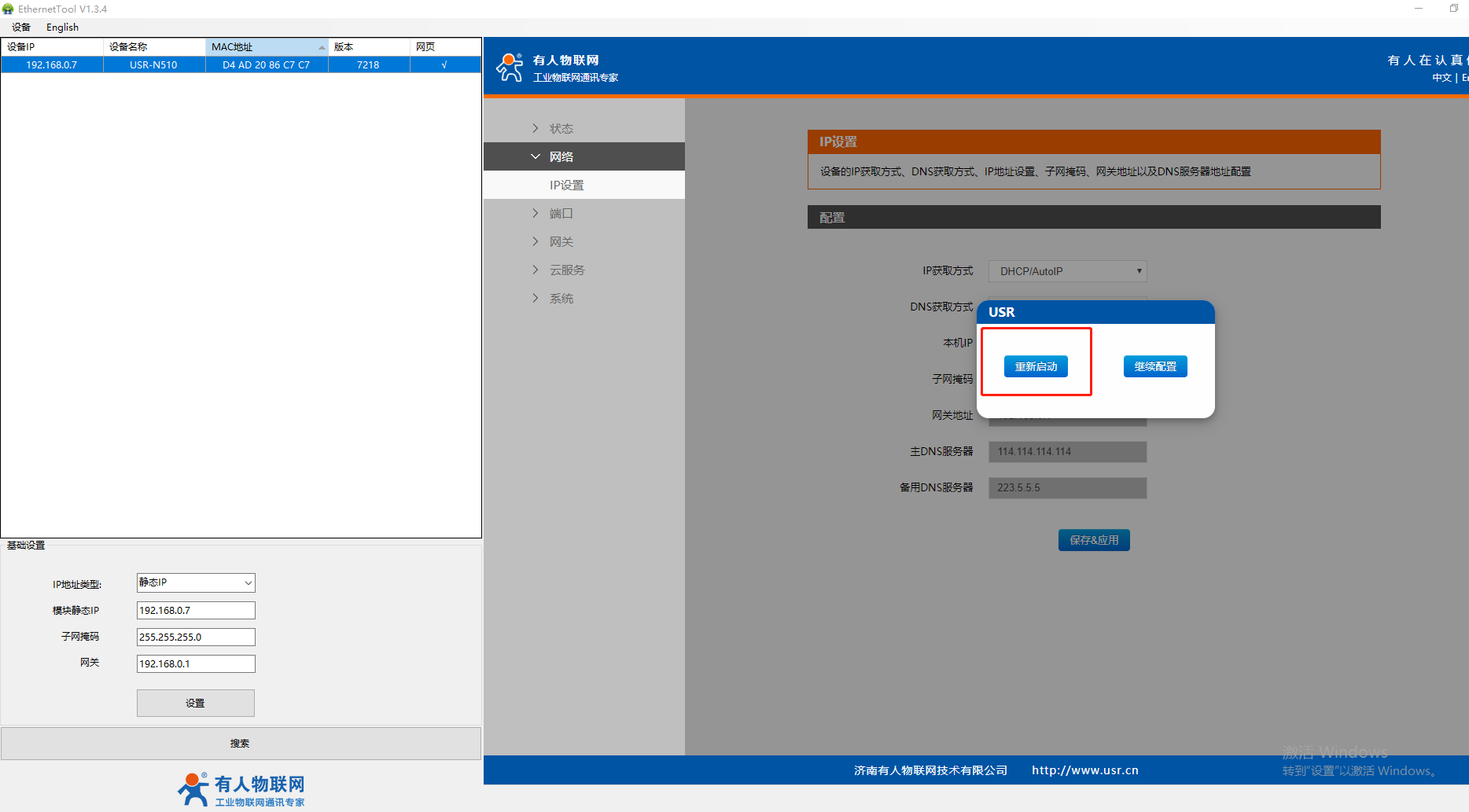 USR-N510-H7 設置軟件官網下載鏈接:http://m.0575400.com/Download/383.html