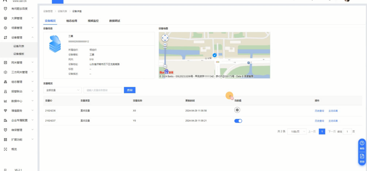1、平臺正常讀取數據后,進行透傳操作(組態步驟可參考另一篇案例:PLCNET510連接三菱串口plc有人云組態數據)