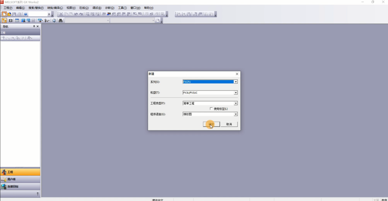4、打開上位機軟件 新建一個 FX3U 的工程