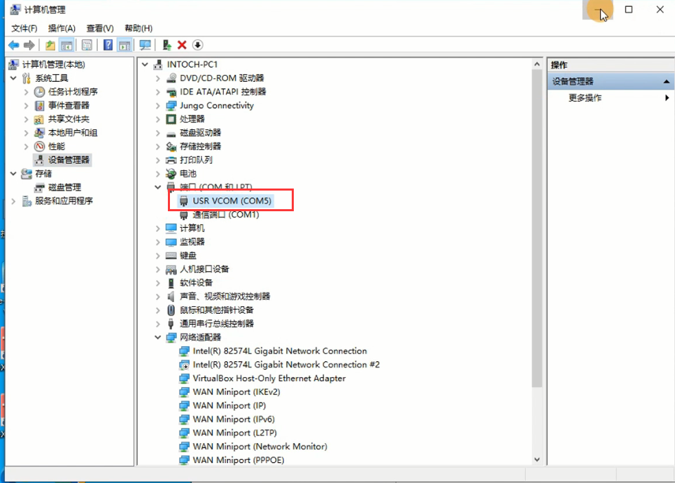 3、在電腦管理界面,設備管理處查看是否正確生成了串口
