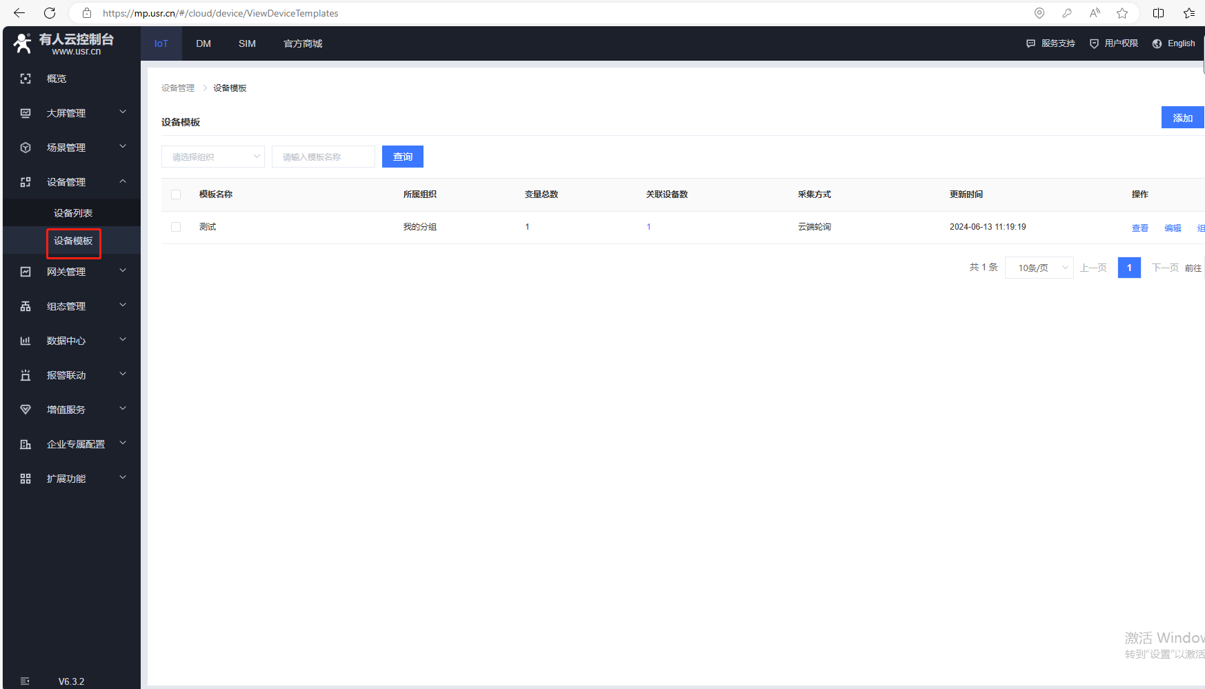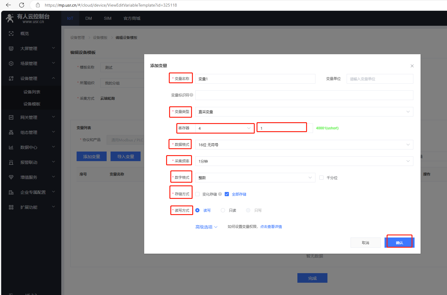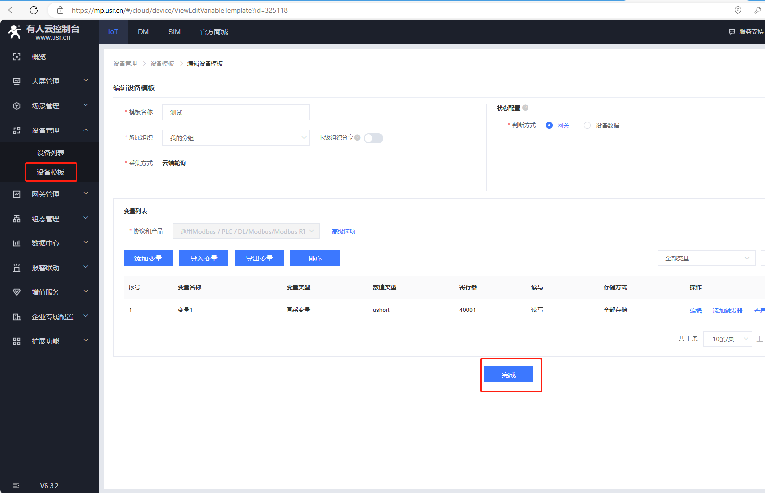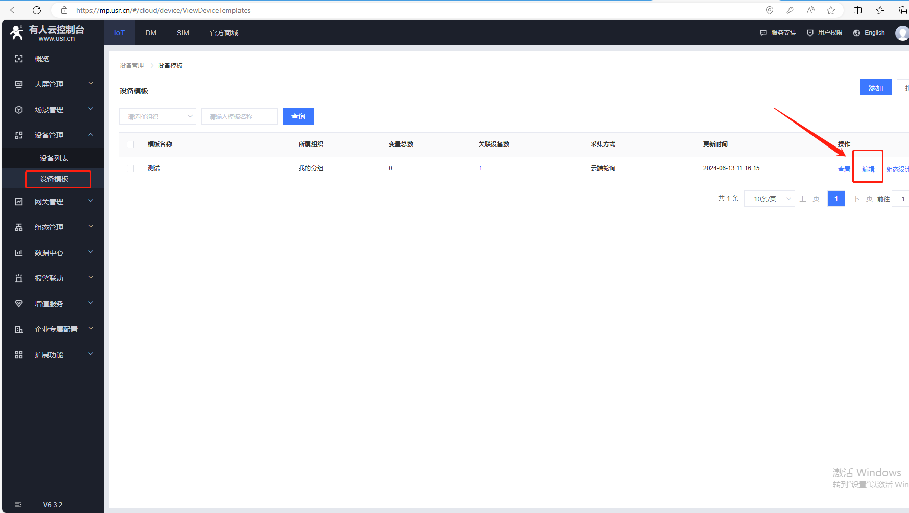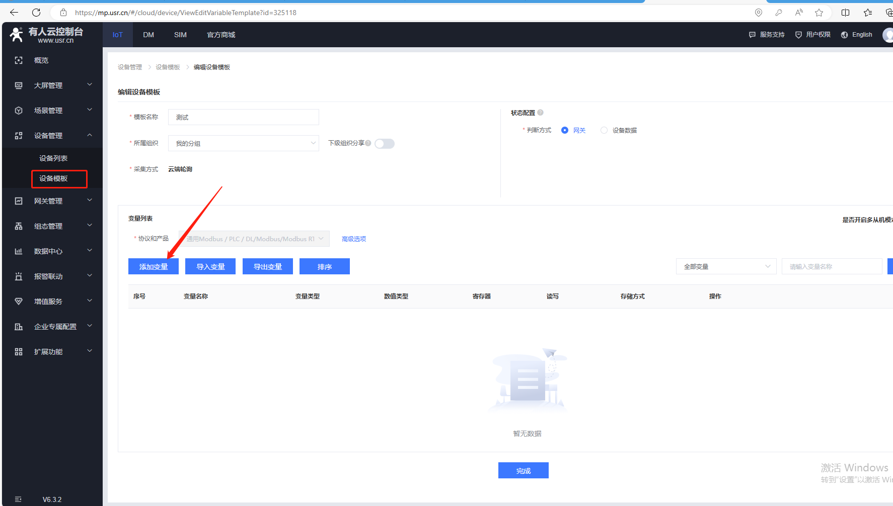 (7)添加變量,點擊設備管理,點擊設備模板,點擊編輯。