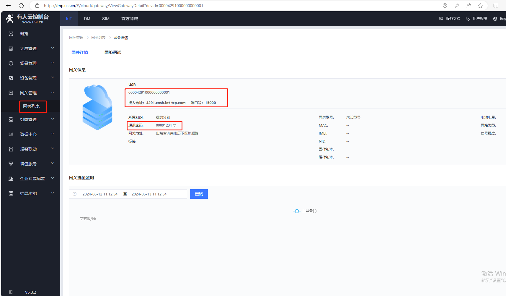 通訊密碼,填有人云添加網關的通訊密碼:00001234