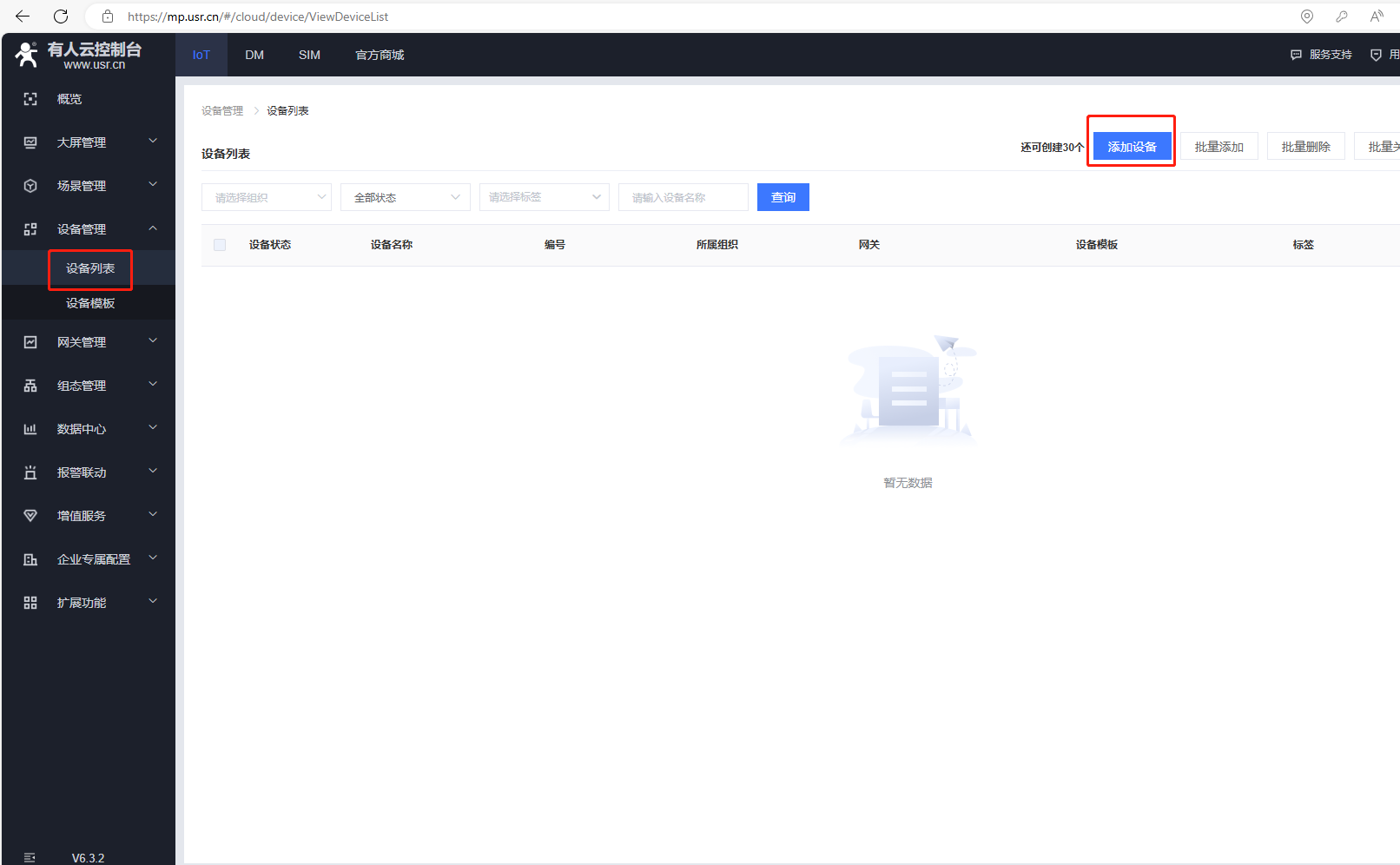 (4)添加設備,點擊設備管理,點擊設備列表,點擊添加設備。