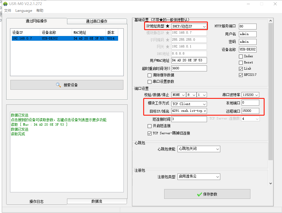 USR-DR302的M0設置軟件:http://m.0575400.com/Download/257.html
