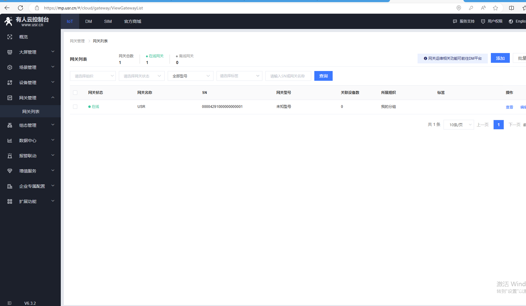 (1)點擊網關管理,網關列表,點擊添加,點擊添加。