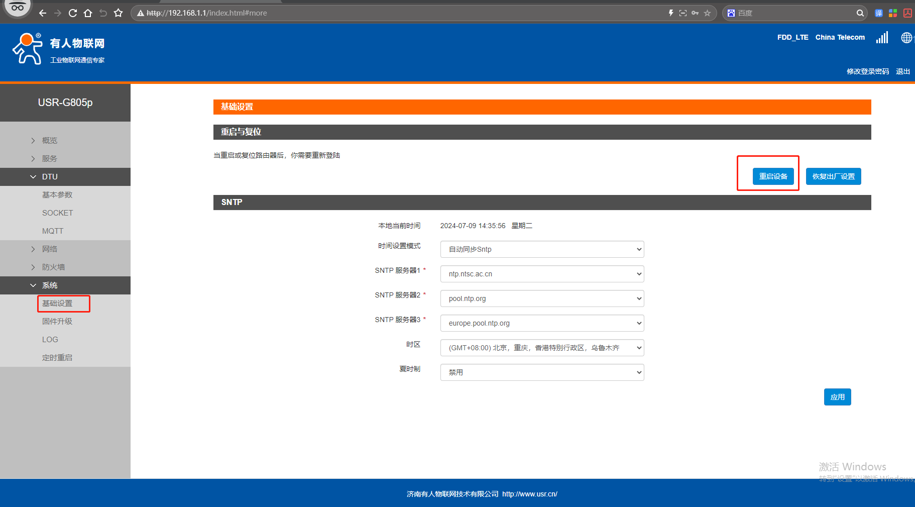 網頁點擊系統,點擊基礎設置,點擊重啟設備。