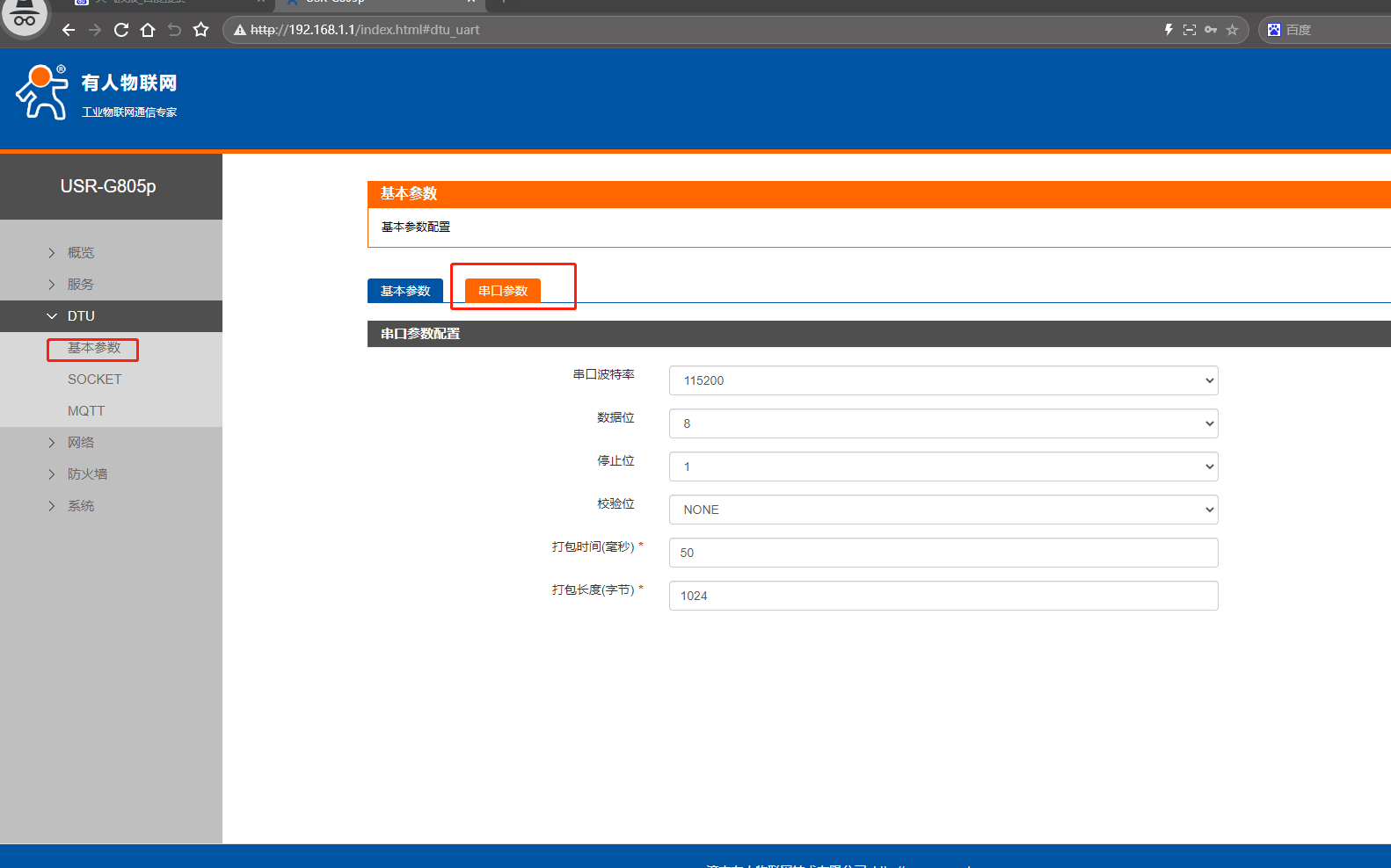 三、USR-G805p網頁參數設置