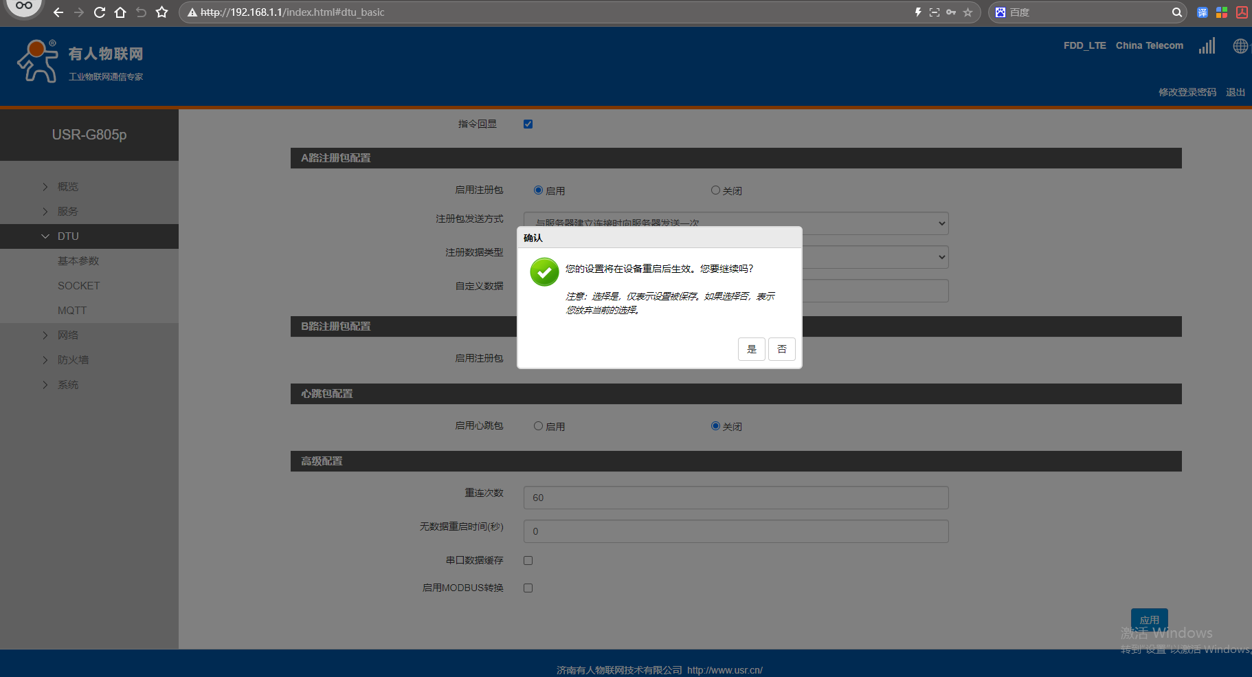 三、USR-G805p網(wǎng)頁參數(shù)設(shè)置