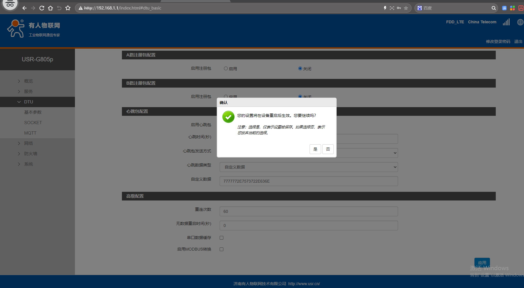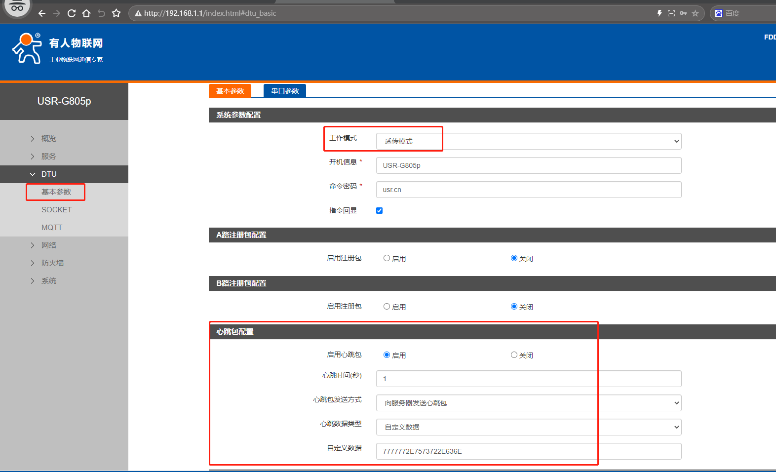 三、USR-G805p網(wǎng)頁參數(shù)設置