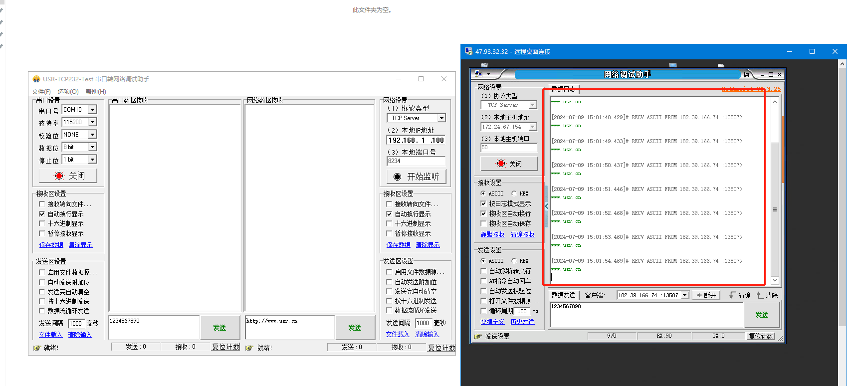 服務器端按照1S周期接收心跳包信息。77 77 77 2E 75 73 72 2E 63 6E(十六進制顯示,對應十進制數(shù)據(jù)是m.0575400.com)