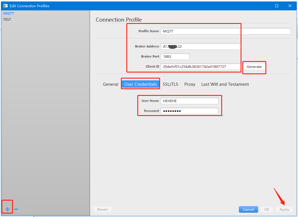 (4)Client ID(客戶端ID)可以點擊后面的Generate自動創建,注意和USR-G805p的客戶端ID不要一樣,如果相同會沖突。