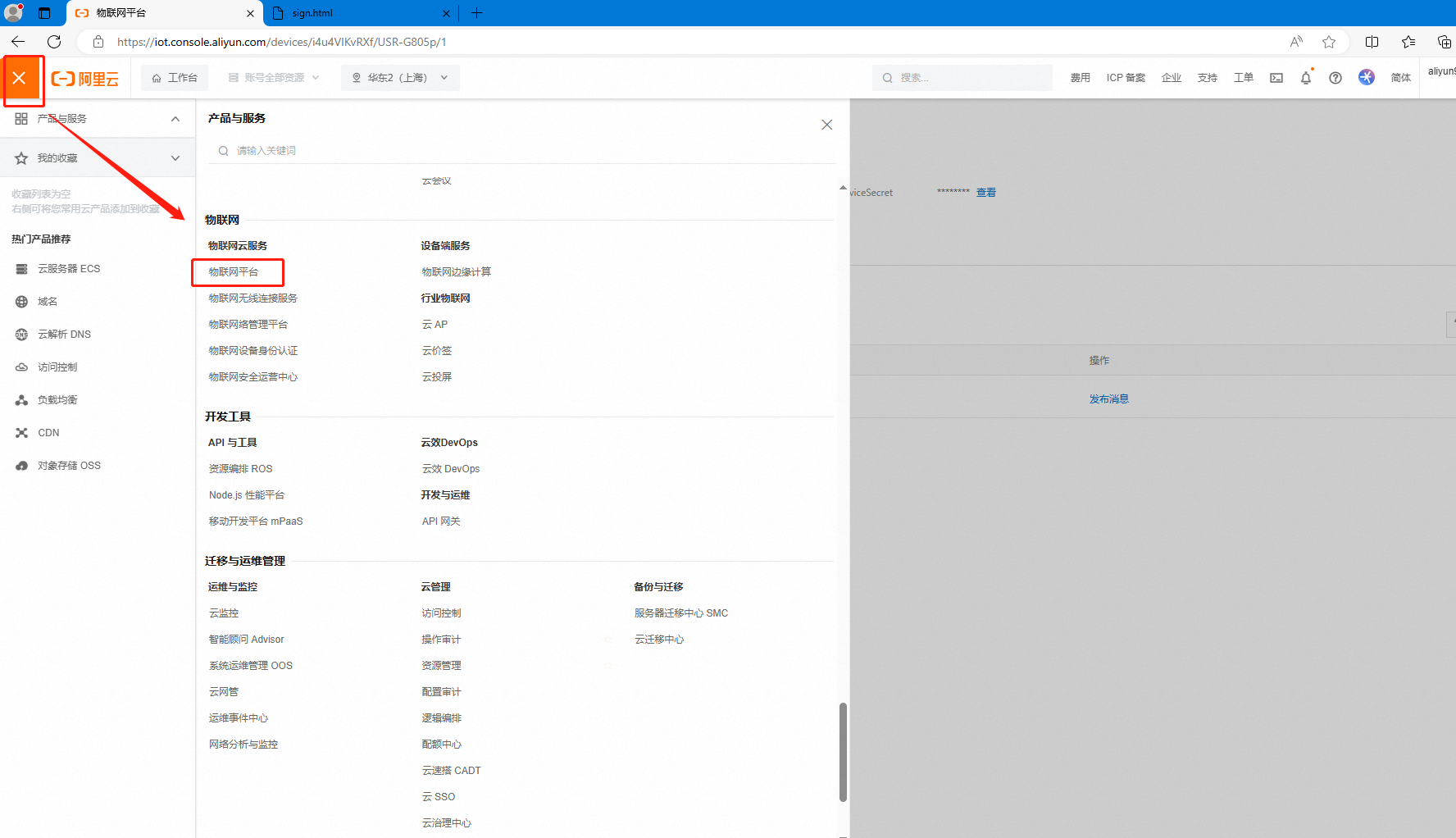 (1)點擊設備,點擊查看,再點擊DeviceSecret后面的查看。