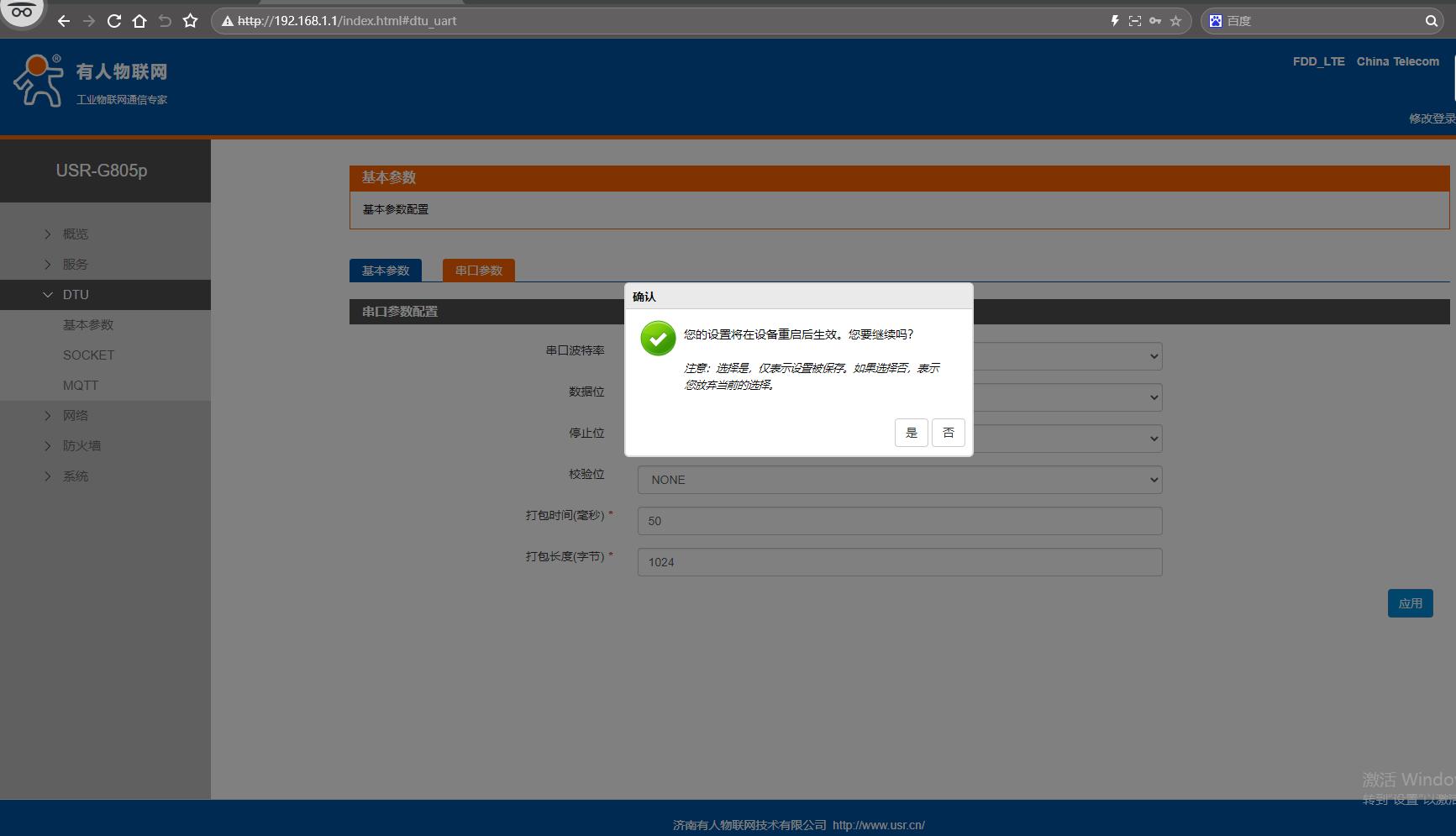 四、USR-G805p網(wǎng)頁參數(shù)設(shè)置