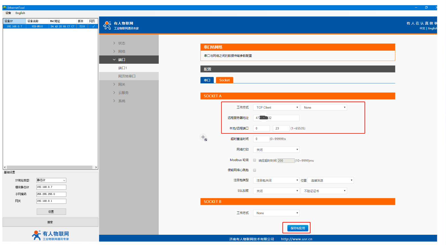 USR-N510-H7 設置軟件官網下載鏈接:http://m.0575400.com/Download/383.html