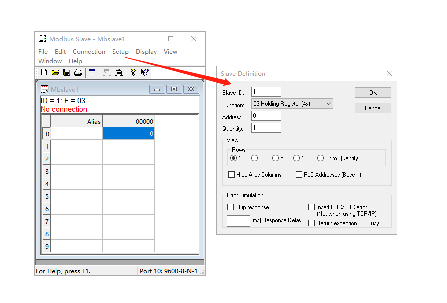 在USR-N510-H7串口線接的電腦上安裝MODBUS SLAVE軟件,點擊Setup