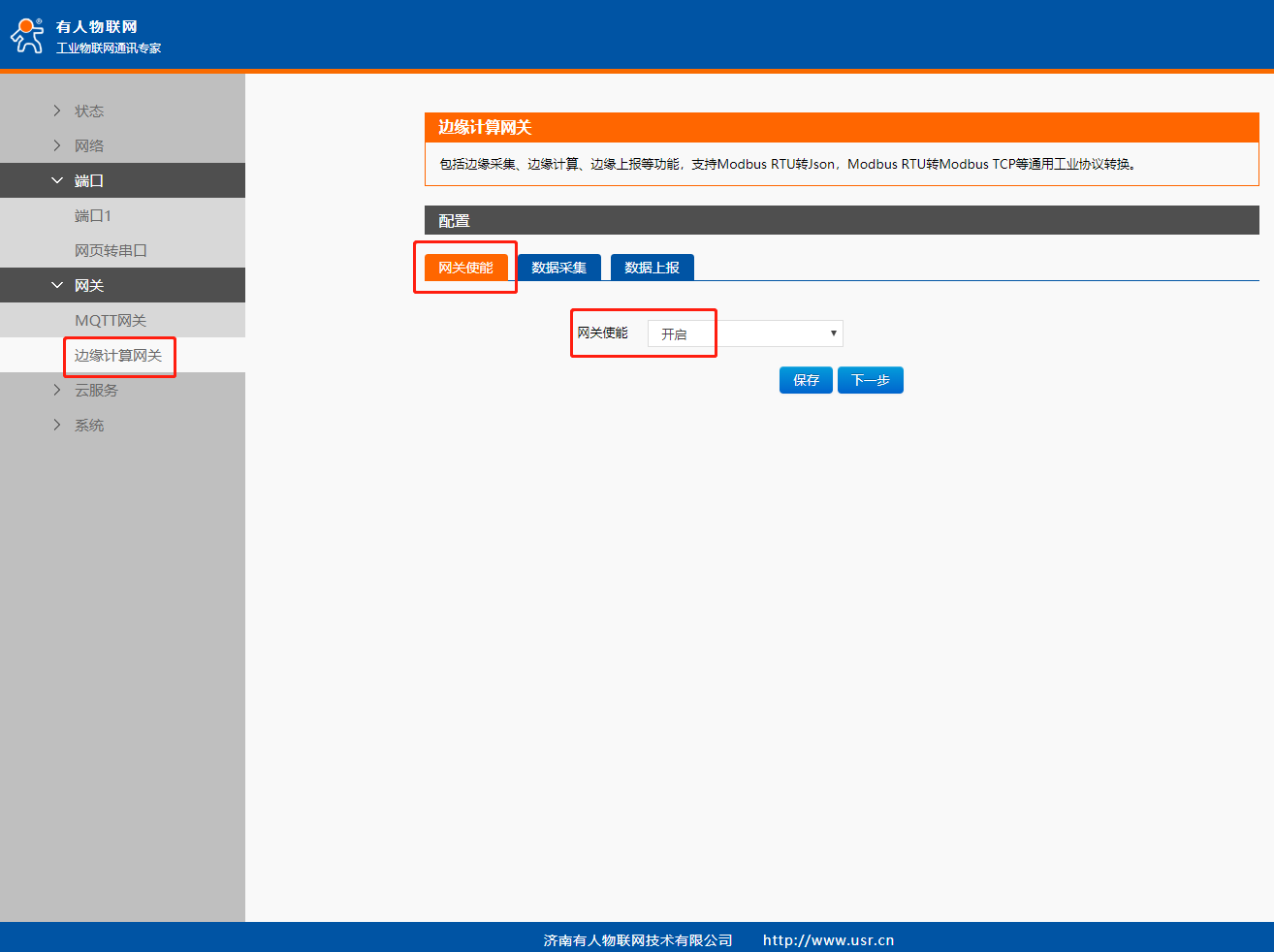 (1)點擊網關,點擊邊緣計算網關,點擊網關使能,網關使能開啟,點擊保存。