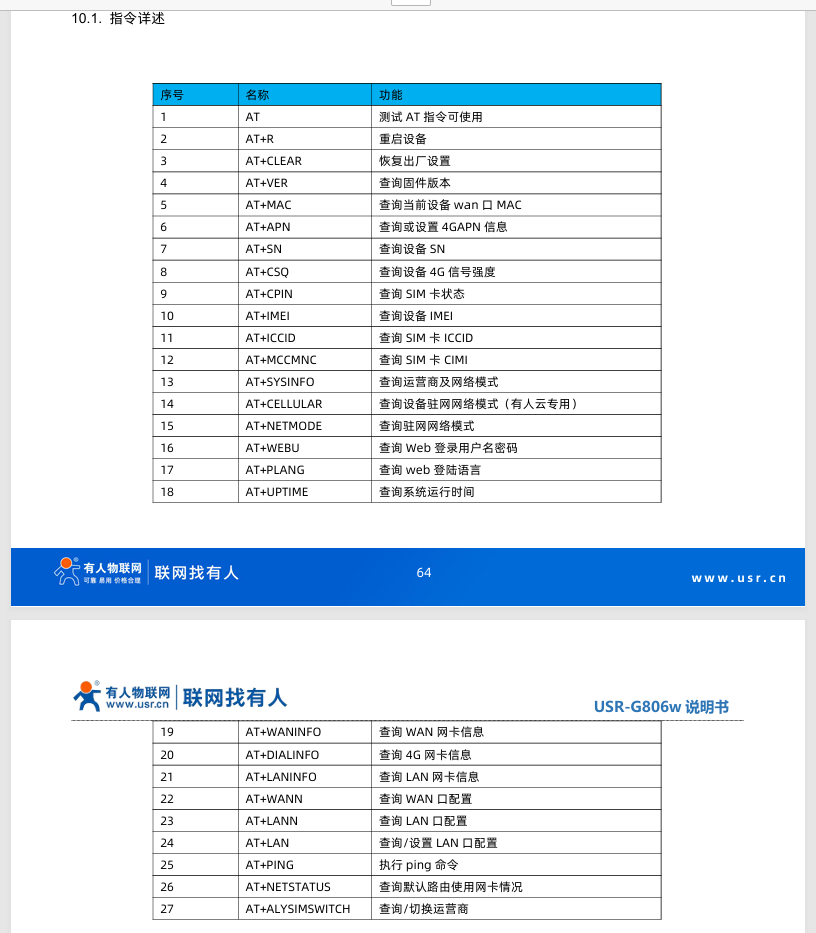 1、USR-G806w說明書支持的AT指令