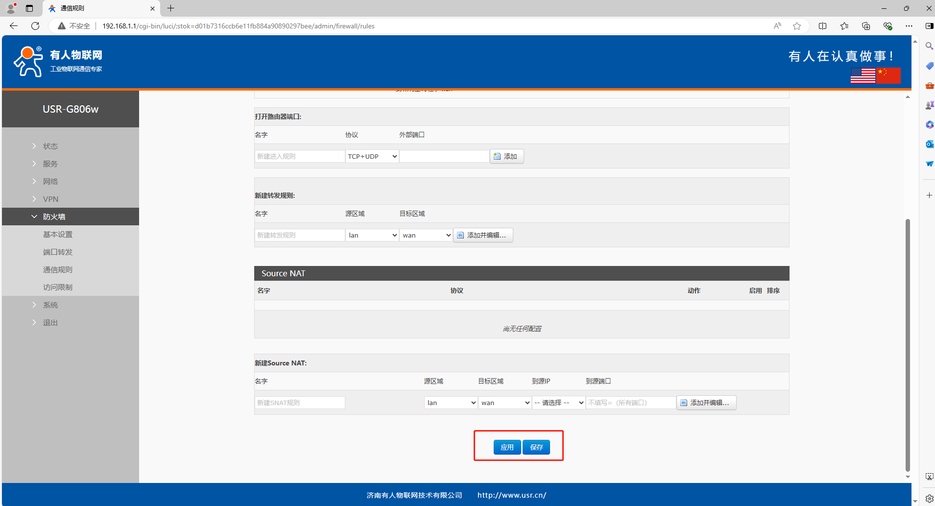 (3)返回防火墻--通信規則頁面,點擊應用,點擊保存。