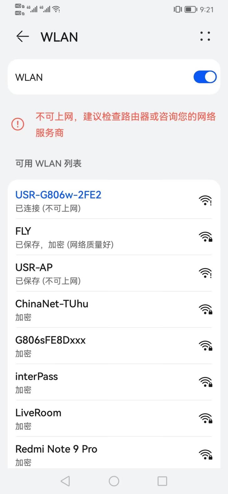 USR-G806w重啟之后,手機搜索連接USR-G806w的WiFi,無法上網。