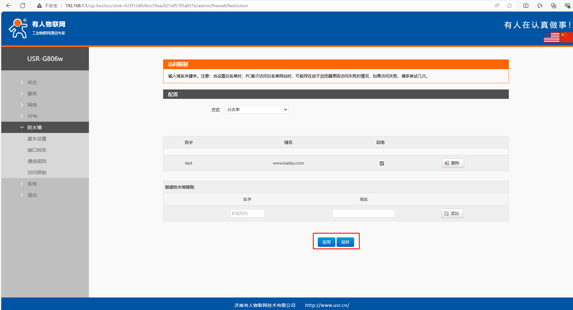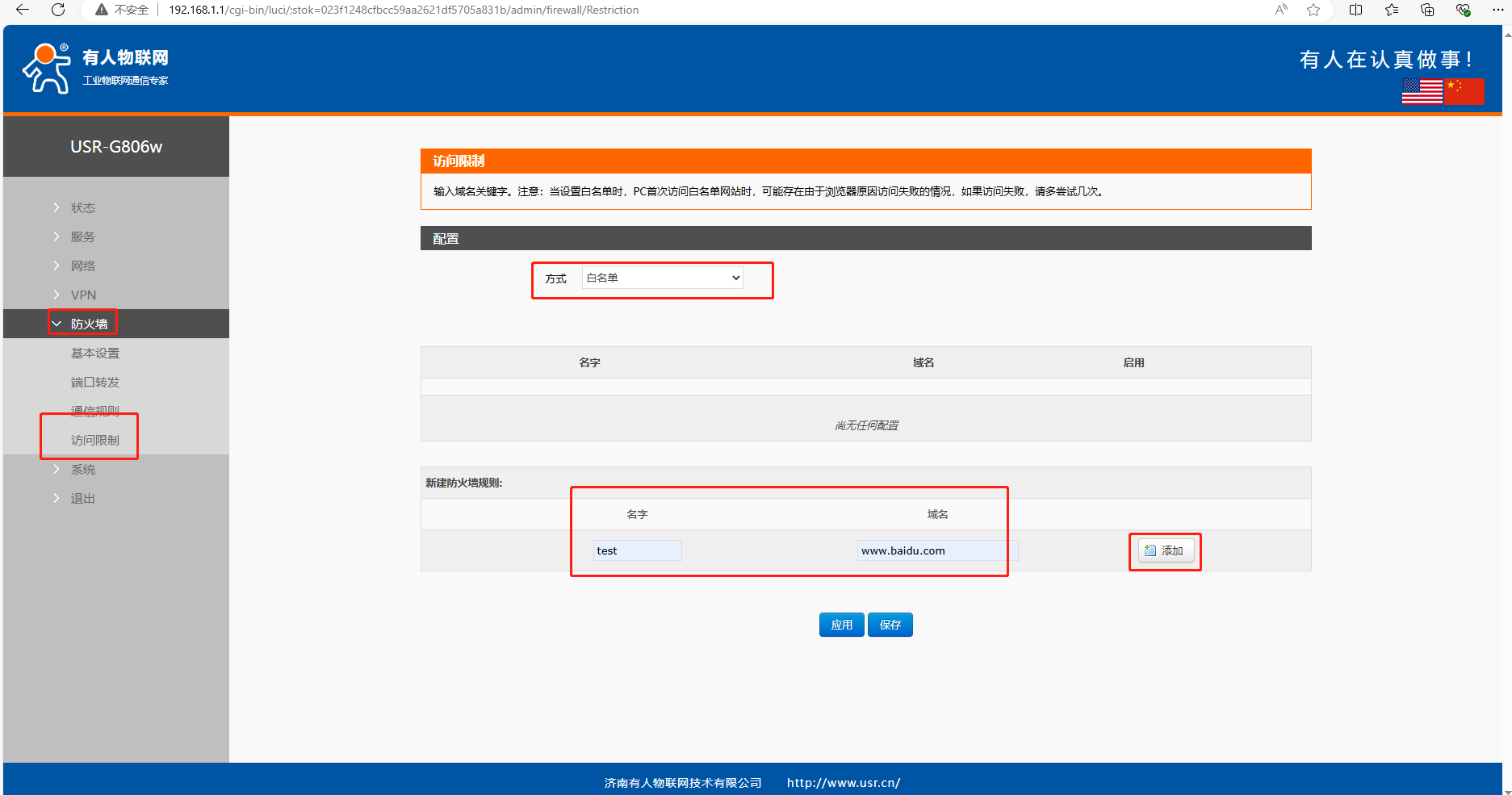USR-G806w 域名白名單示例