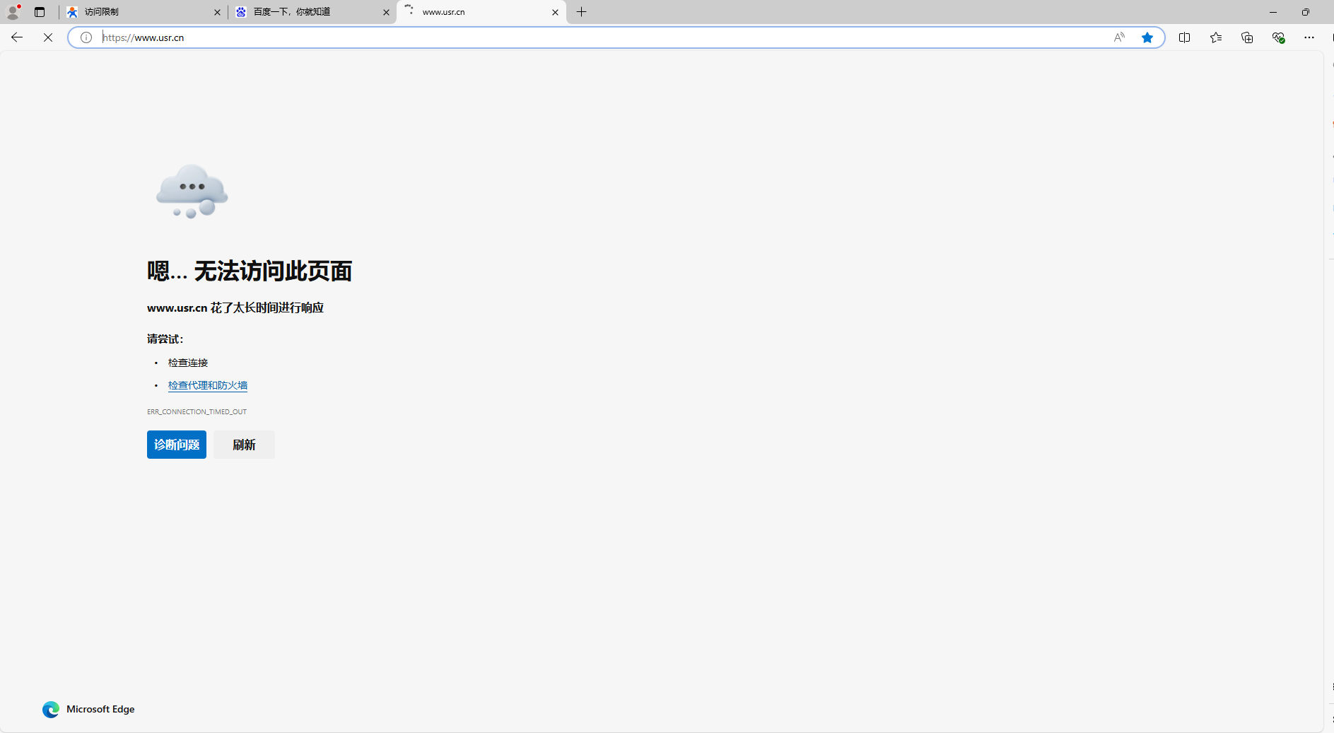 設置完成后,就實現了域名白名單的功能。電腦連接路由器,除規則中的域名可以訪問外,其他域名都不能夠訪問。如圖,設備能夠訪問百度www.baidu.com,無法訪問有人官網m.0575400.com。