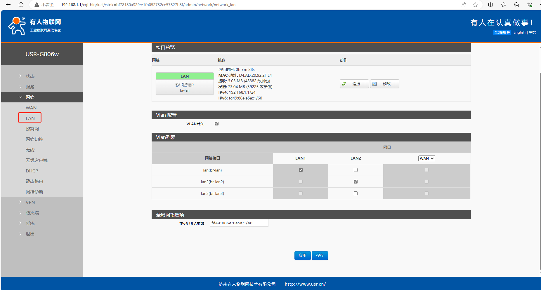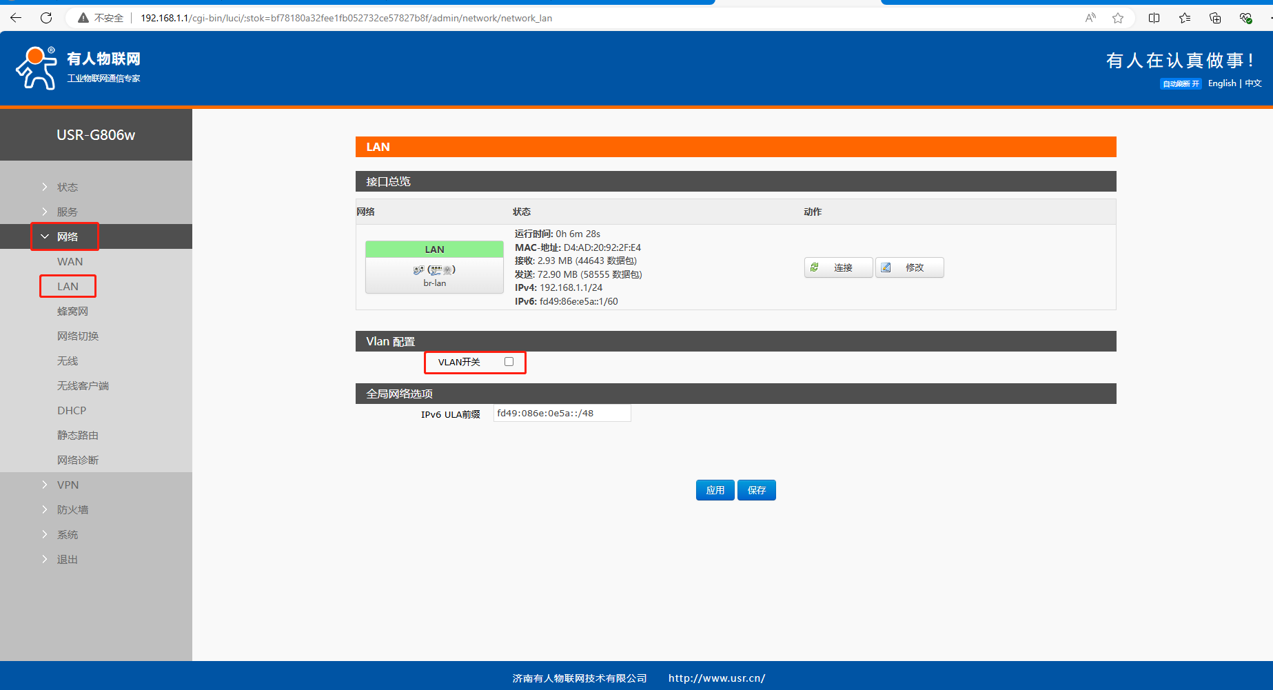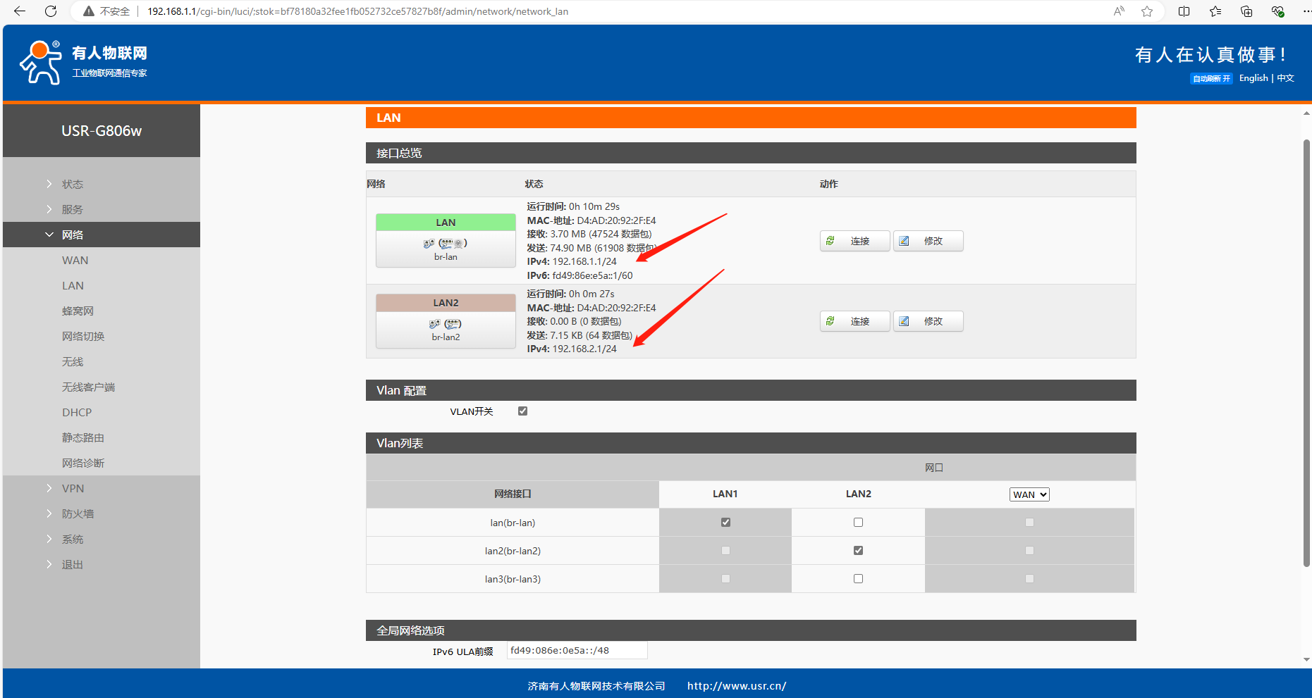 USR-G806w VLAN劃分應(yīng)用設(shè)置示例