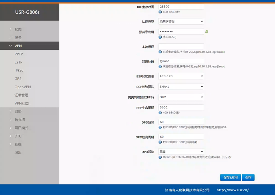 2、USR-G806s對照服務器配置參數,配置完點擊應用。