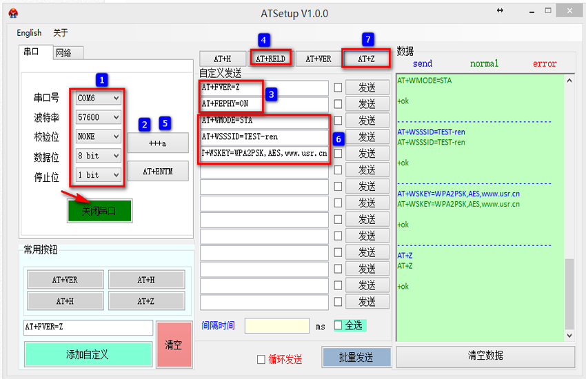 6、將模塊重啟 AT+Z