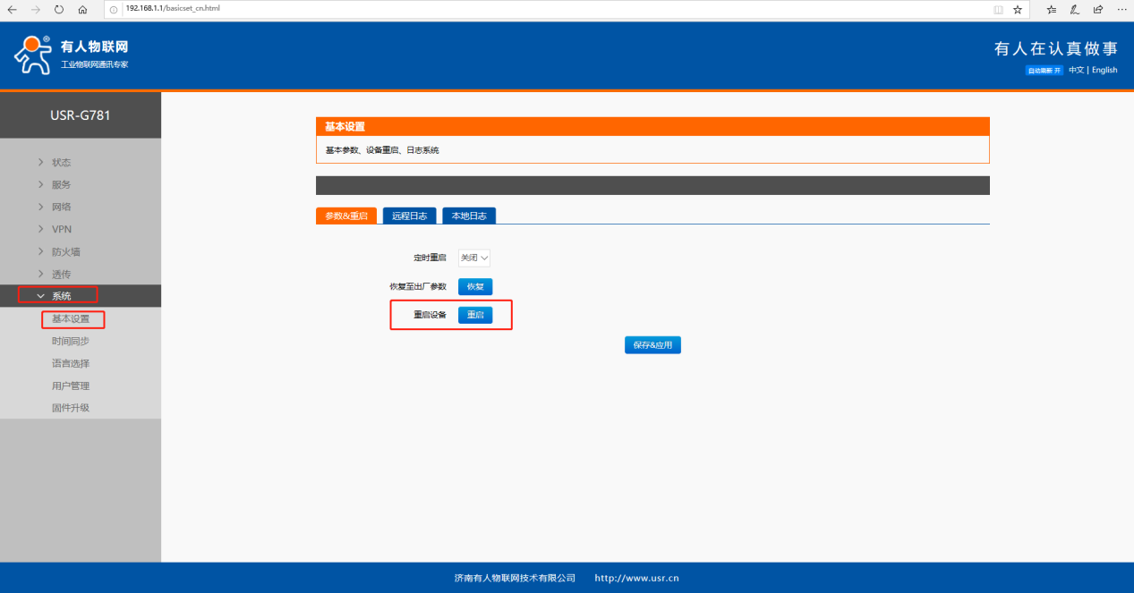 1>設置模式選擇為網絡透傳模式,保存并應用